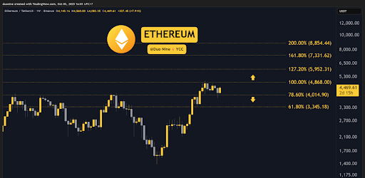 展望未來,若ETH突破$5,000將進入價格發現階段,並迅速大幅漲。如果發生這種情況,關鍵目標位於$6,000和$7,300。