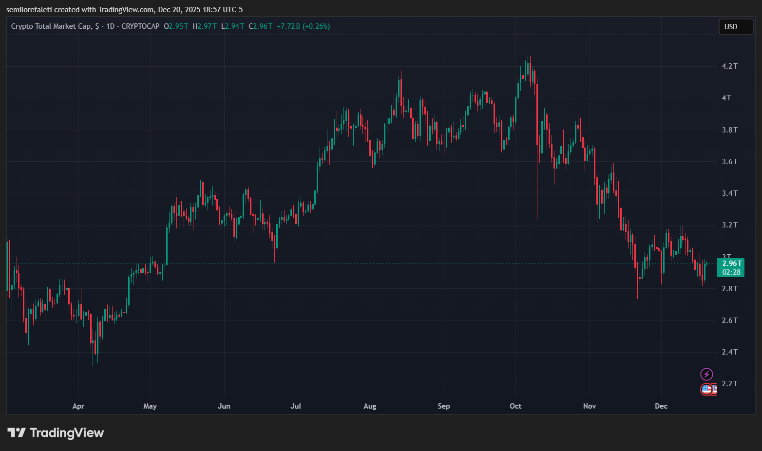 !Coinbase總加密貨幣市值在日線圖上價值2.96萬億美元 |來源:Tradingview.com 上的 TOTAL 圖表特色圖片來自 WEAU,圖表來自 Tradingview