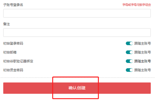 步骤二:点击“创建子账号”,填写相关信息并进行“确认创建”。