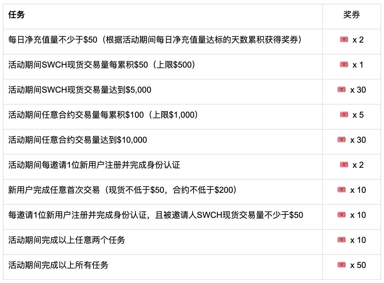 4、本活动奖励为SWCH,总奖池为28,295 SWCH。用户活动期间需完成任意 SWCH 现货交易量,才可参与瓜分奖券奖池。奖励将于活动结束后14个工作日内发放至获奖者钱包账户中,可在“钱包—账单”中查看。奖励分发公告可在Gate News频道查看。