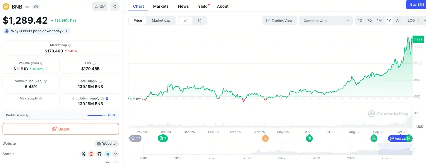 迷因币热潮更推动 BNB 价格触及 1,300 至 1,315 美元区间,并在 10 月 13 日突破至 1375 美元历史新高。