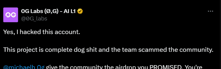 根据最新消息,0G (0G) 山寨币的官方 X 账号已被黑客接管。