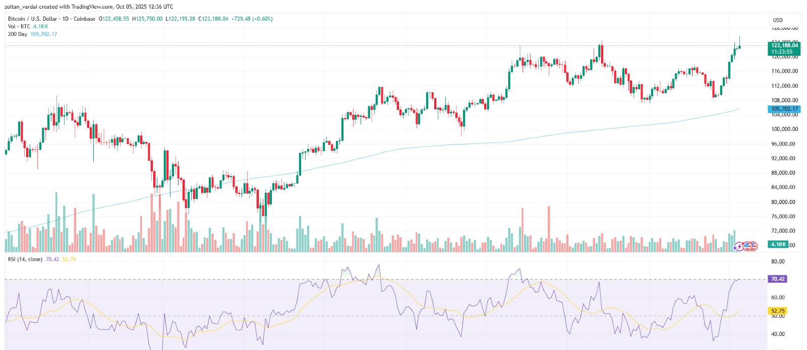 比特币上冲行情到$125K 受到美国政府 shutdown和宏观因素的推动:分析师
