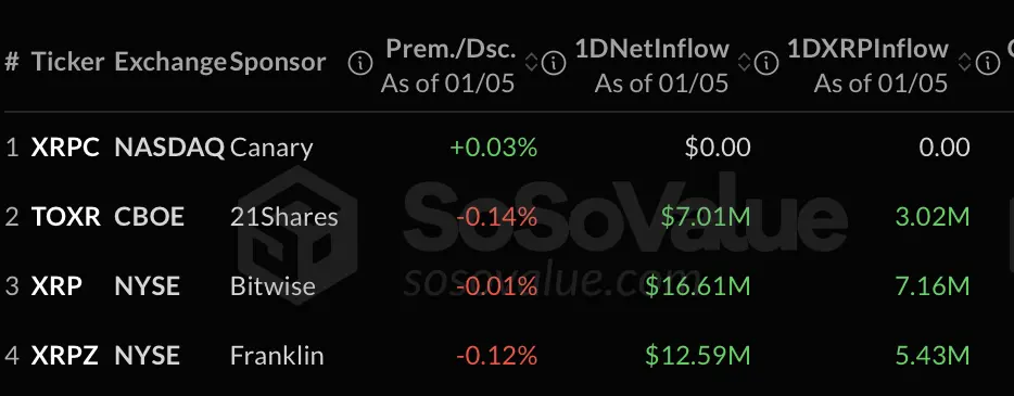 美国现货XRP ETF在1月5日录得$48 百万美元的净流入,连续七周实现资金流入,累计流入达12.3亿美元。富兰克林·坦普顿的产品单次交易就贡献了$25 百万美元,凸显机构投资者的集中参与。
