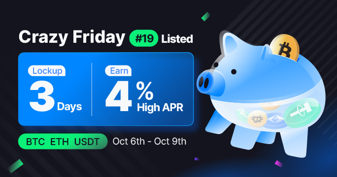 تسمح هذه المرحلة من Crazy Friday بقفل BTC/ETH/USDT لمدة قصيرة تصل إلى 3 أيام. يصل معدل الفائدة السنوية إلى 4% وإجمالي حصة الاشتراك محدودة وسيتم تقديمها على أساس أسبقية الحضور!