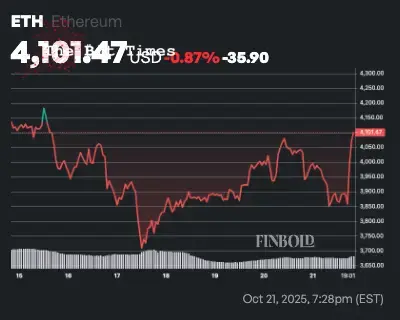 مخطط سعر ايثر لمدة سبعة أيام. المصدر: فينبولد**مخطط سعر ايثر لمدة سبعة أيام. المصدر: فينبولدمع تجدد المشاعر الصاعدة، تحول تركيز السوق الآن إلى ما إذا كان بإمكان المشترين الحفاظ على سعر إثيريوم فوق مستوى الدعم الحرج البالغ 4,000 دولار.