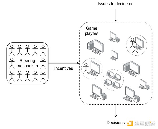 الهدف من هذه المقالة هو استكشاف نموذج حيث يمكن استخدام الذكاء الاصطناعي للسماح لنا بالاستفادة من الهياكل الديمقراطية دون آثار سلبية. “الذكاء الاصطناعي هو المحرك ، البشر هم عجلة القيادة”. لا يوفر البشر سوى كمية صغيرة من المعلومات للنظام ، ربما بضع مئات فقط ، لكنها كلها مدروسة جيدا وذات جودة عالية للغاية. تتعامل الذكاء الاصطناعي مع هذه البيانات على أنها “وظيفة موضوعية” وتعمل بلا كلل لاتخاذ الكثير من القرارات لبذل قصارى جهدها لتحقيق هذه الأهداف. على وجه الخصوص ، سوف تستكشف هذه المقالة سؤالا مثيرا للاهتمام: هل يمكننا القيام بذلك دون وضع الذكاء الاصطناعي واحد في المركز ، ولكن بدلا من ذلك الاعتماد على سوق مفتوحة تنافسية يمكن لأي الذكاء الاصطناعي (أو هجين بين الإنسان والآلة) المشاركة فيها بحرية؟