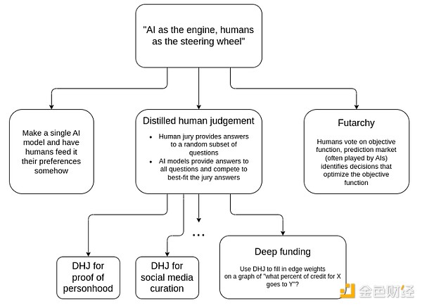 تم اختراع Futarchy في الأصل قبل عصر الذكاء الاصطناعي. ومع ذلك ، فإن Futarchy يتناسب تماما مع نموذج “الحلول المعقدة ، المدققين البسيطين” الموصوف في القسم السابق ، ويمكن أن يكون المتداولون في Futarchy أيضا ذكاء اصطناعيا (أو مزيجا من الذكاء البشري + الاصطناعي). يتمثل دور “الحلال” (متداول السوق التنبئي) في تحديد كيفية تأثير كل خطة مقترحة على قيمة المؤشر المستقبلي. إنه صعب. إذا كان الحل صحيحا ، فإنهم يكسبون المال ، وإذا كان الحل مخطئا ، فإنهم يخسرون المال. يحتاج المدققون (الأشخاص الذين يصوتون على مؤشر ، إذا لاحظوا أن المقياس “مزور” أو قديم ، فقم بضبط المقياس وتحديد القيمة الفعلية للمقياس في وقت ما في المستقبل) فقط للإجابة على السؤال الأبسط “ما هي قيمة المقياس الآن؟”
