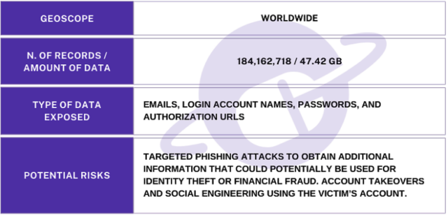 يشمل معلومات الوصول إلى حسابات البنوك ومؤسسات مالية في عدة دول، ومنصات طبية، ومواقع بوابة الجهات الحكومية، مما يعرض الأفراد أو المنظمات المسربة لخطر كبير.