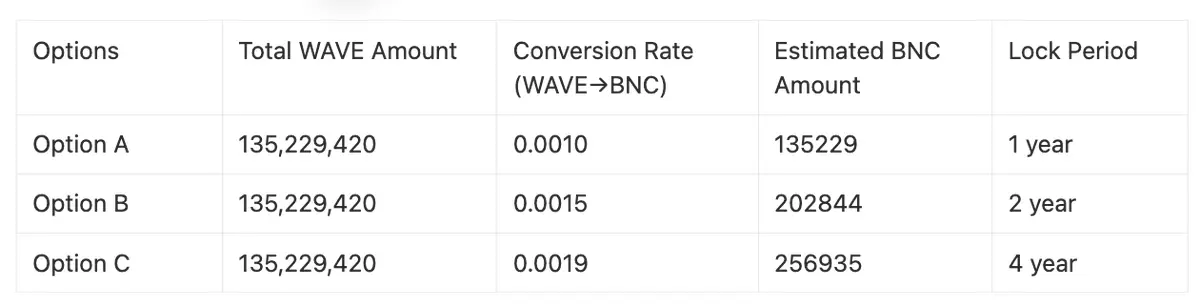 لقد نجح Liquid Wave في إجراء ثلاث جولات، وكانت عملية تحويل WAVE دائمًا عنصرًا أساسيًا في مشروعنا. نحن الآن ننتقل إلى المرحلة النهائية: تحديد معدل تحويل WAVE إلى BNC، والذي سيتم توزيعه كمحتفظ $bbBNC.