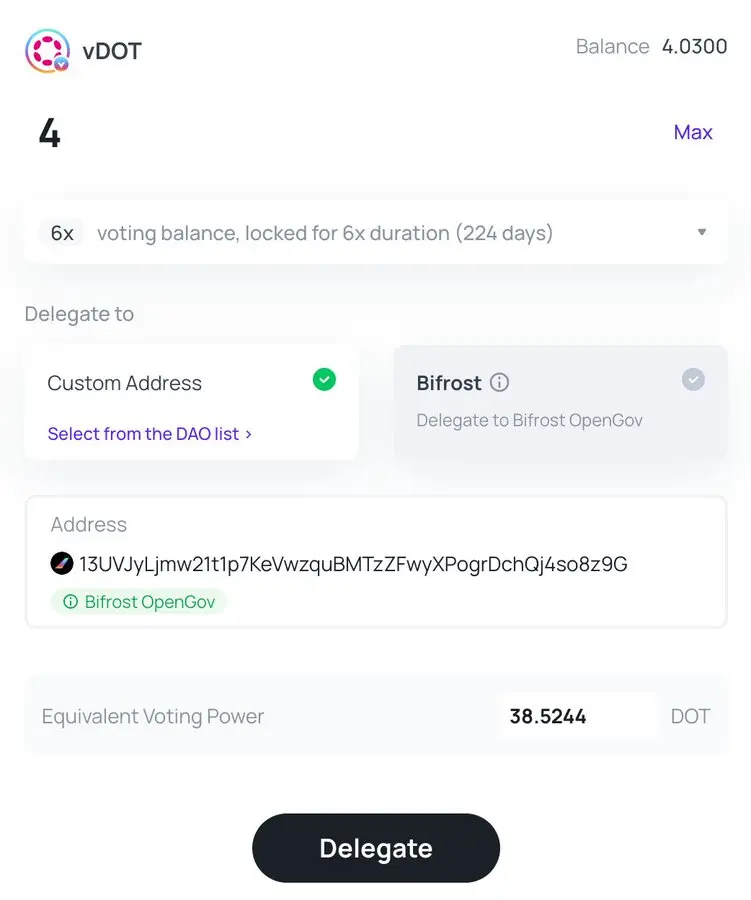 👉 https://app.bifrost.io/vstaking/vDOT?tab=governance&type=delegation