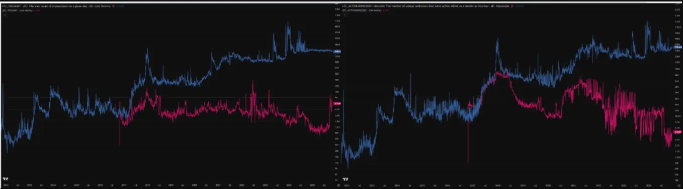 Los datos muestran que Litecoin está superando a la mayoría de las monedas del mismo grupo en términos de volumen de transacciones diarias, así como en el nivel de actividad de las billeteras. Es notable que incluso ha superado a Zcash (ZEC), una moneda que había registrado un fuerte aumento de precios recientemente.