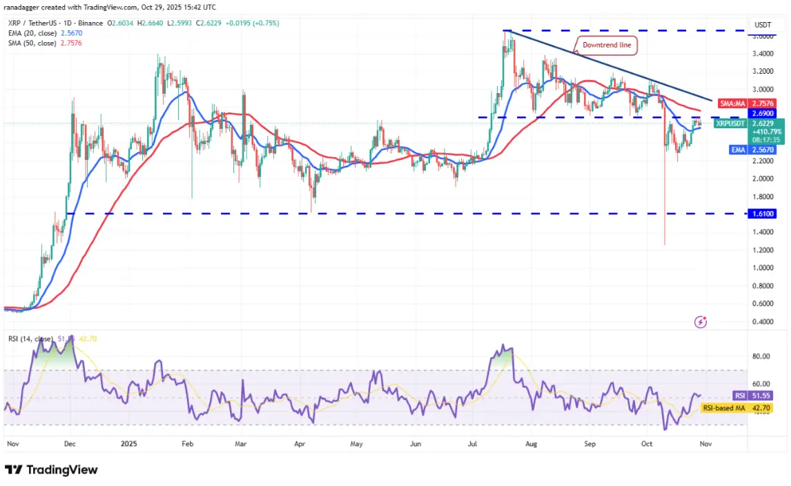 XRP a fluctué étroitement entre la zone de rupture de 2,69 USD et la ligne EMA de 20 jours (2,56 USD) au cours des derniers jours.