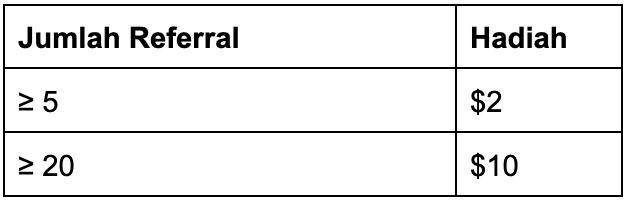 *Total Hadiah: $1.000, yang akan dibagi berdasarkan jumlah Referral.