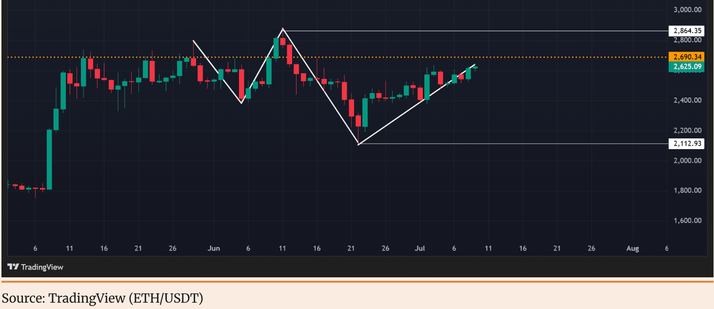 ETHの週足は強いパフォーマンスを示す: ほぼ**7%**の大幅上昇で、重要な$2,600抵抗レベルを強力に突破。