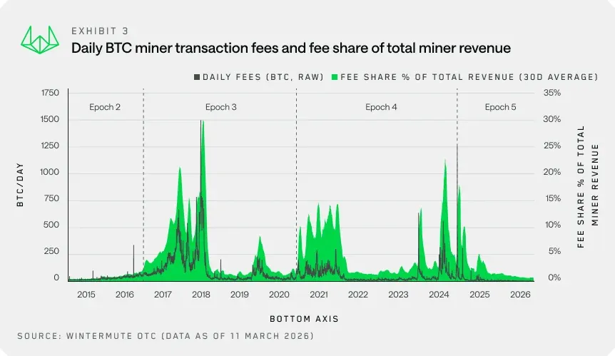 # ウィンターミュートは従来のビットコインマイニングモデルは時代遅れだと指摘最初の暗号通貨の採掘者たちは、収益性の低下により大量に損失に直面している。生き残るためには、AIホスティングに切り替えるか、ビットコインのリザーブを運転資本として管理する方法を学ぶ必要があると、ウィンターミュートは考えている。## ビジネスモデルの構造的危機4年周期のデジタルゴールドは、ハルビング後の収益低下を通常補う二倍の利益を初めてもたらさなかった。粗利益率のピークは、以前は弱気市場の底値と特徴付けられた水準と一致した。手数料はコストをカバーできず、企業の総収益の約1%に過ぎない。マイナーには、依然として高いエネルギーコストも圧力となっている。マイナーの取引手数料と総収入に占める手数料の割合。出典:ウィンターミュート## HODL時代の遺産としての受動的保管ウィンターミュートの評価によると、採掘者はビットコインの総供給量の約1%を管理している。アナリストはこれを「HODL時代の遺産」と呼び、財務管理の全ツールキットはほとんど活用されていないと指摘している。伝統的に暗号資産市場での収益獲得手段はステーキングとDeFiセクターに限られていた。しかし、専門家はマイナー向けにより広範なツールを提案している。* デリバティブを通じた市場リスクの収益化* カバードコールの販売* 資金担保のプットオプション* 利子付きのクレジットプロトコルへの受動的投資> > *「アクティブなバランス管理はマイナーにとって最も過小評価されているレバレッジだ。ビットコインを受動的なリザーブから運用資産に変える者は、次のハルビングに向けて構造的な優位性を得るだろう」とウィンターミュートは述べている。*> ## 人工知能代替案は人工知能だ。マイニング企業は長年にわたり、安価な電力が得られる地域にエネルギーインフラを構築してきた。その結果、彼らはAI産業にとって不可欠な資源の所有者となり、ゼロから迅速に構築することは不可能だ。すでに、AI用の計算能力のレンタルへの移行が始まっている。3月、コアサイエンティフィックは所有するすべてのビットコインを売却し、モルガン・スタンレーから5億ドルの融資を受けた。得た資金の大部分は、データセンターをAIのニーズに合わせて改装するために使われる。同様の動きは、ライオット・プラットフォームズ、MARAホールディングス、テラウルフ、カンゴなど他のプレイヤーも行っている。ウィンターミュートは、人工知能への方向転換には抜本的な措置と多額の資本が必要だと強調した。多くの企業にとっては負担となる可能性があるが、専門家はこれを「健全な一震」と見なし、最終的には産業をより効率的にすると考えている。なお、3月にヴァンエックのデジタル資産部門のマシュー・シーゲルは、AIへのシフトによりマイニング企業の株式がより魅力的になると述べている。