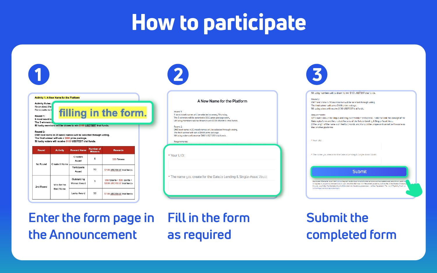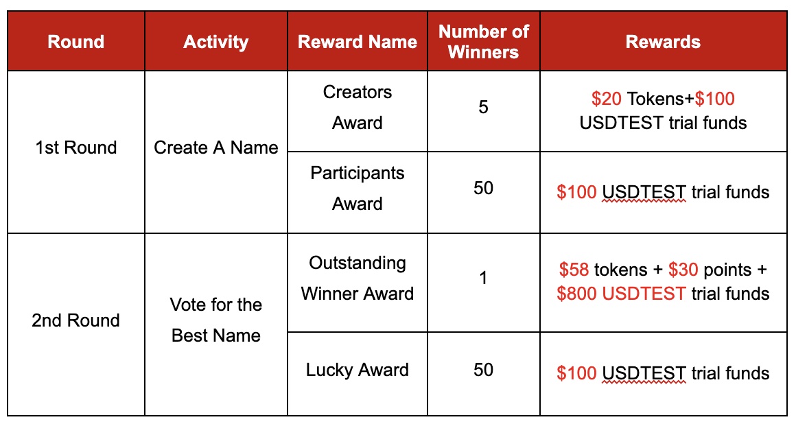 50 lucky voters will receive $100 USDTEST trial funds each.