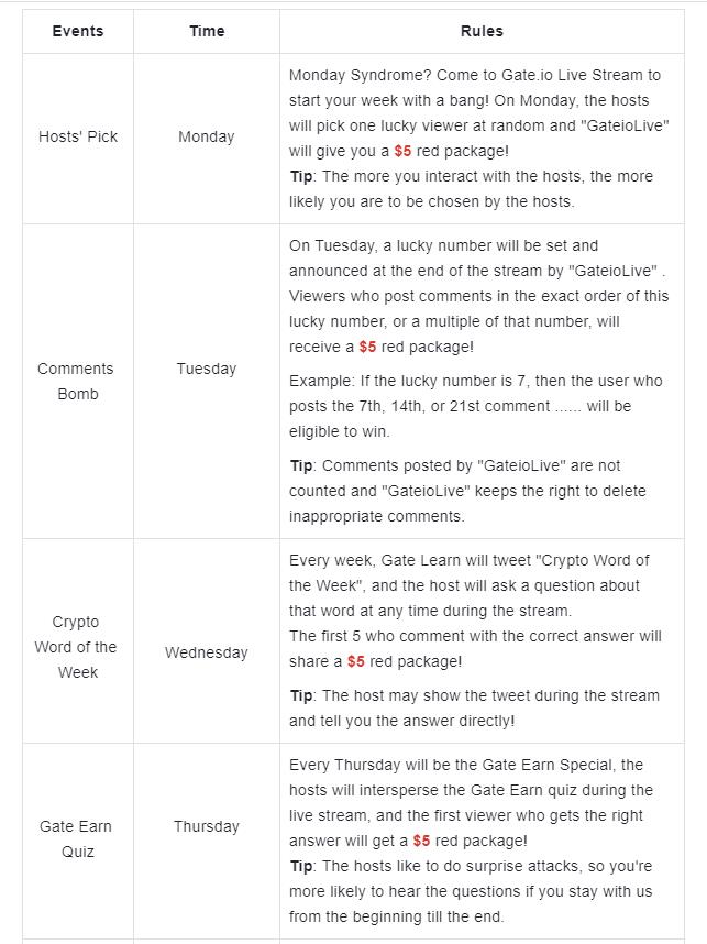Starting this week, Gate Live Stream will launch different intriguing interactions with Gate's official account "Gateio Live" from Monday to Friday. Users who participate in the interactions will have the opportunity to obtain big rewards.
