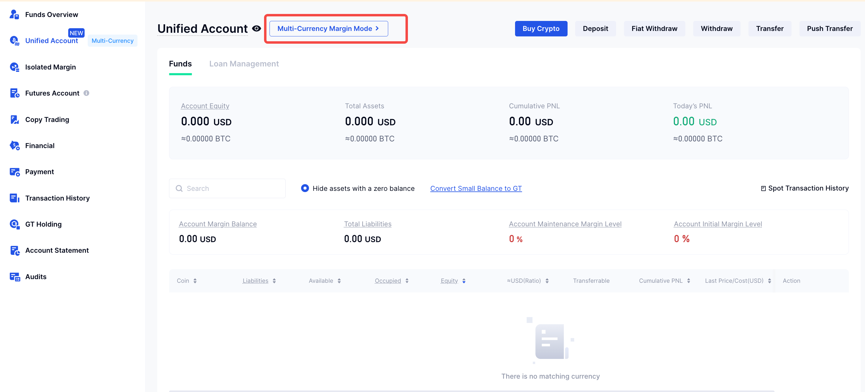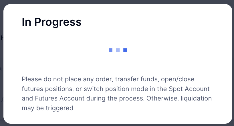 Observação: Ao mudar do modo Margem Multimoeda para o modo Spot Clássico, certifique-se de que sua conta não tenha passivos, posicionamento de contrato, pedidos pendentes, etc., caso contrário, a mudança falhará.