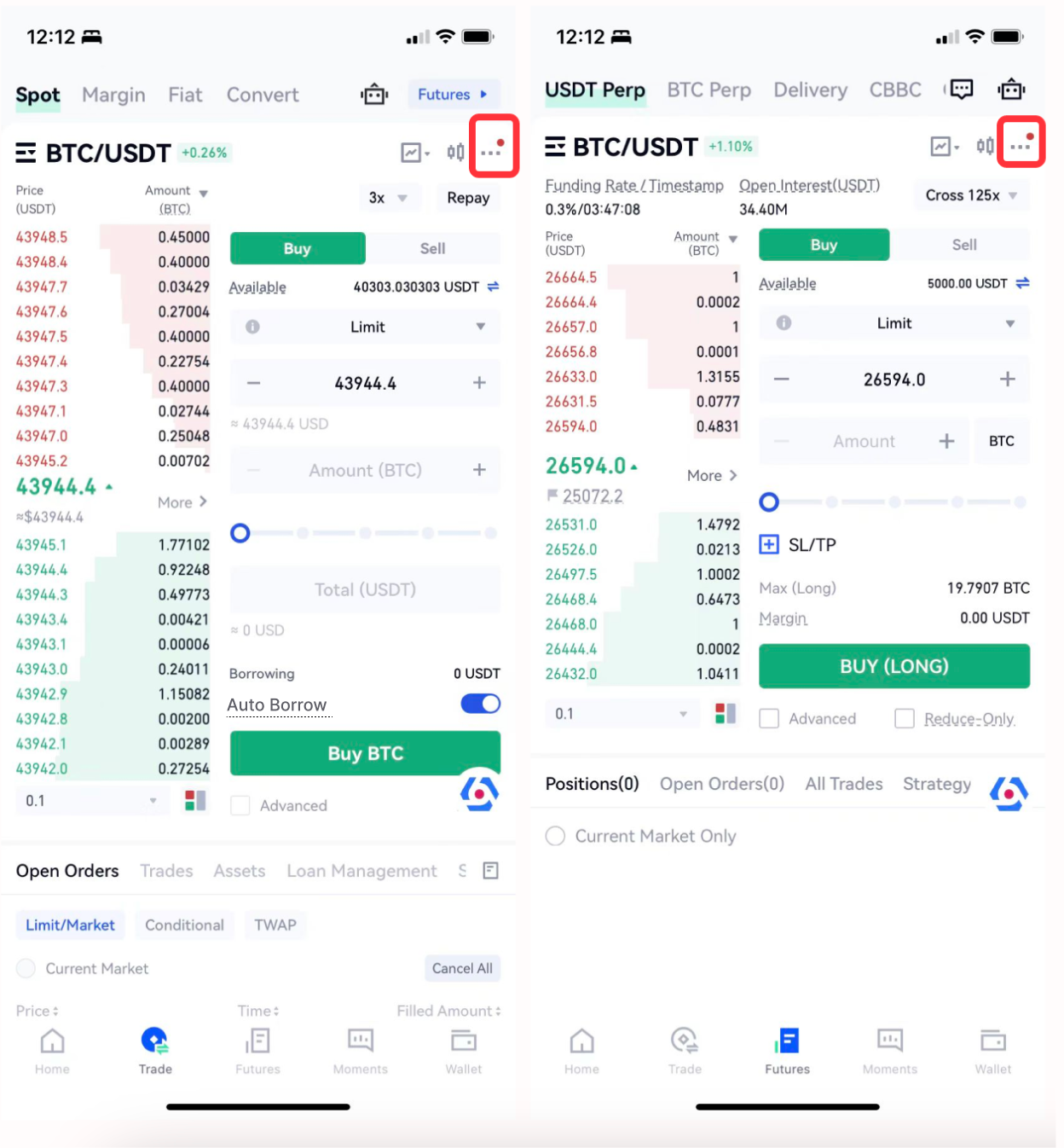 Etapa 1: Vá para a seção Spot ou USDT Perpetual Futures e selecione o ícone (⋯).