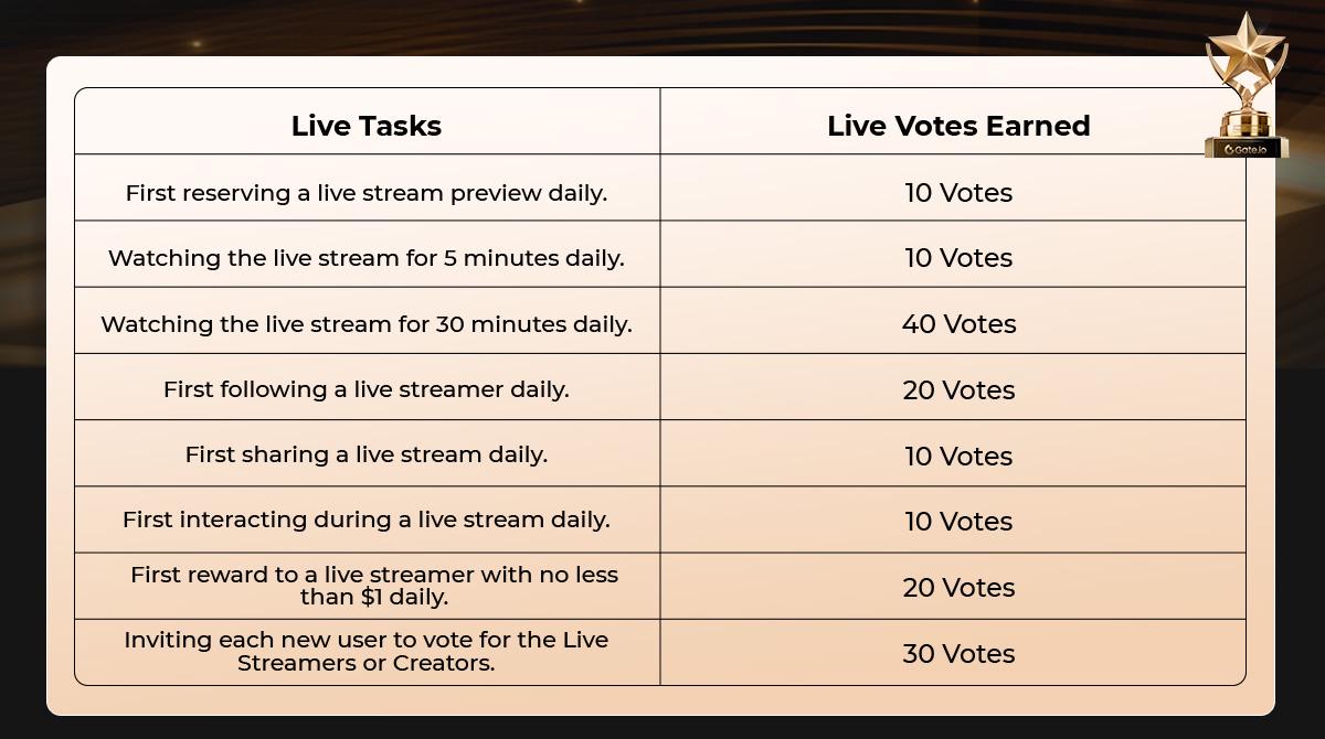 Os usuários serão classificados com base nos votos que derem aos seus streamers ou criadores de conteúdo do Gate Post favoritos. Os 20 melhores usuários receberão recompensas generosas.