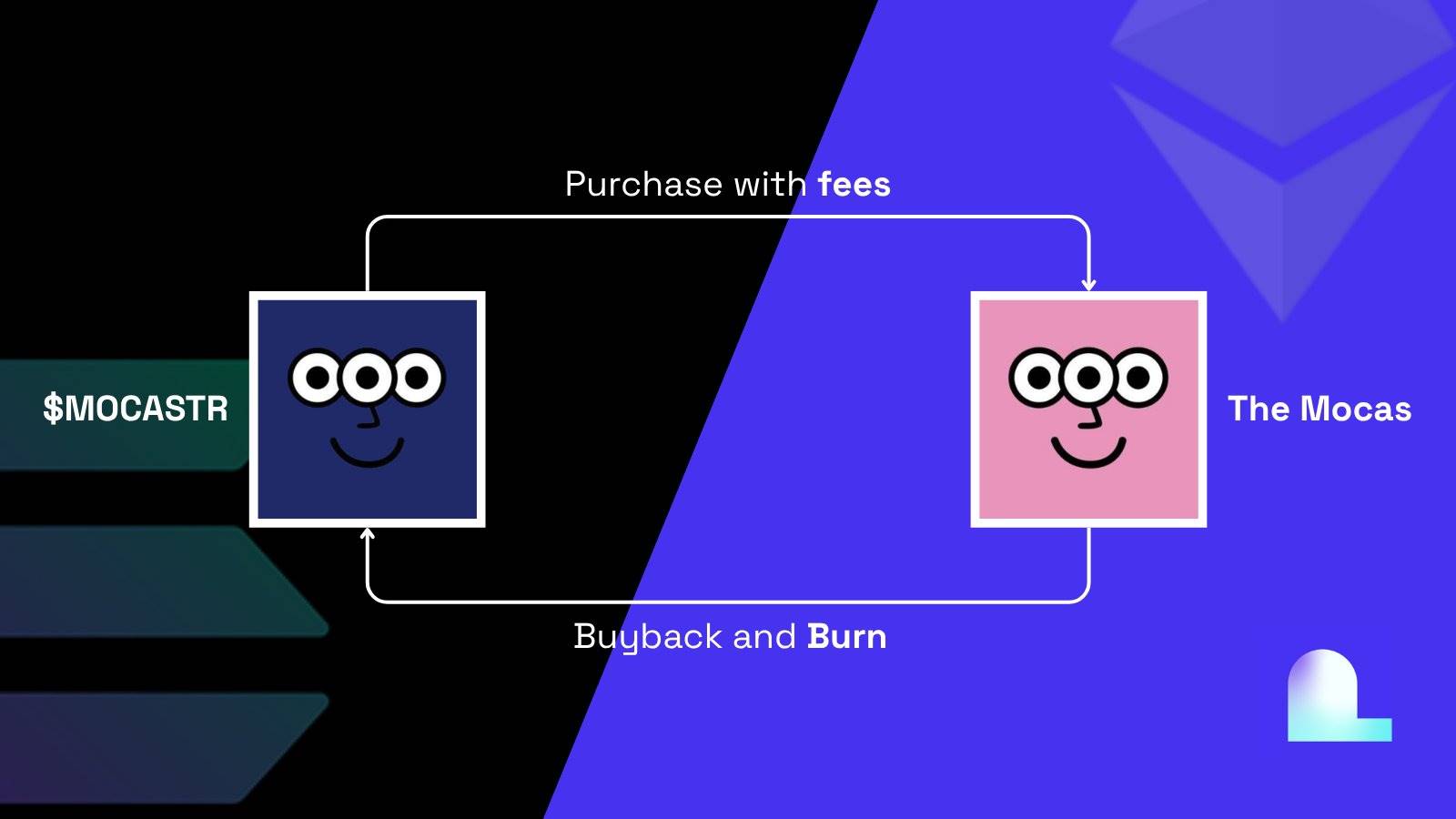 Após completar o ciclo “comprar barato, vender caro”, os lucros dividem-se: parte é usada para recompra e queima de $MOCASTR, criando efeito deflacionário; o remanescente permanece no tesouro, reforçando a capacidade operacional para o ciclo seguinte.