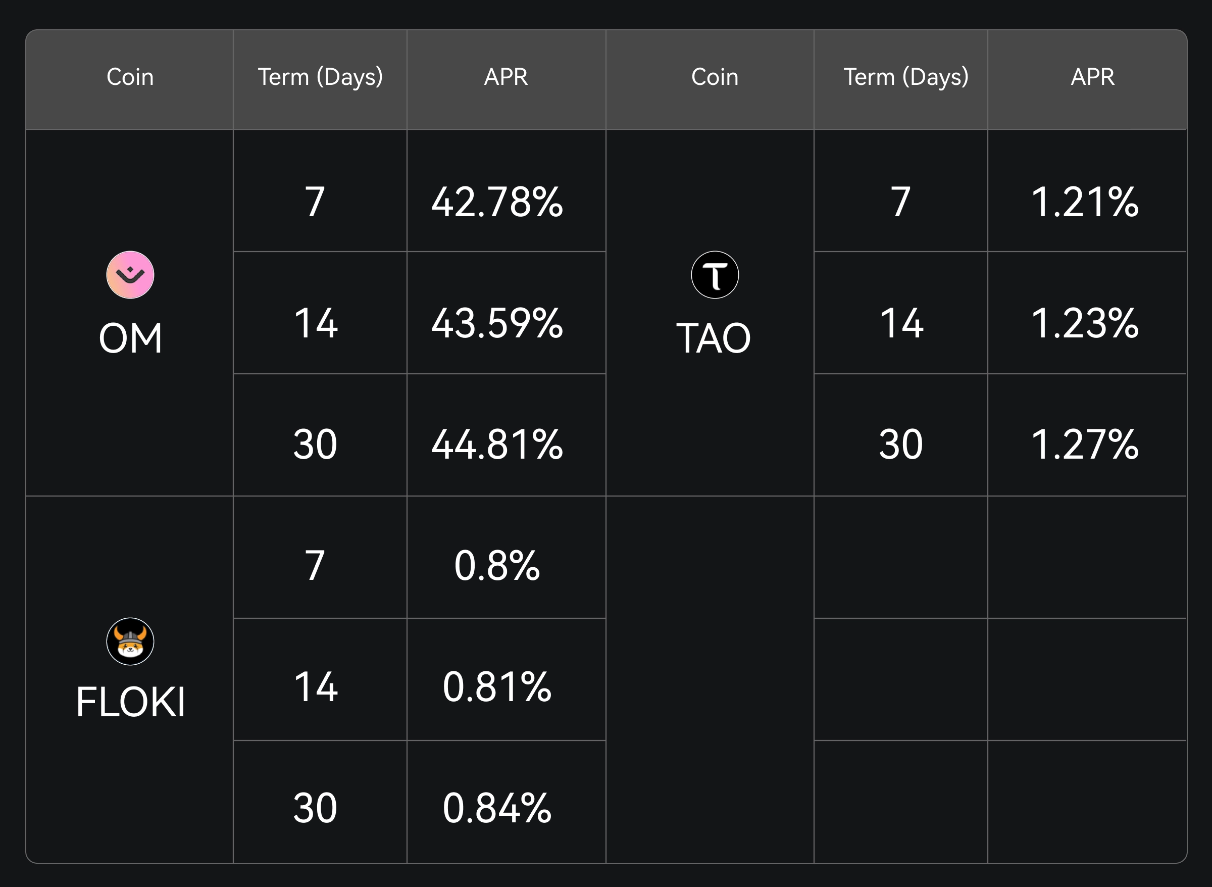 Gate Simple Earn официально запустила продукты с фиксированным сроком OM, TAO и FLOKI, предлагающие гибкие периоды блокировки на 7, 14 и 30 дней. Не пропустите — подпишитесь прямо сейчас.