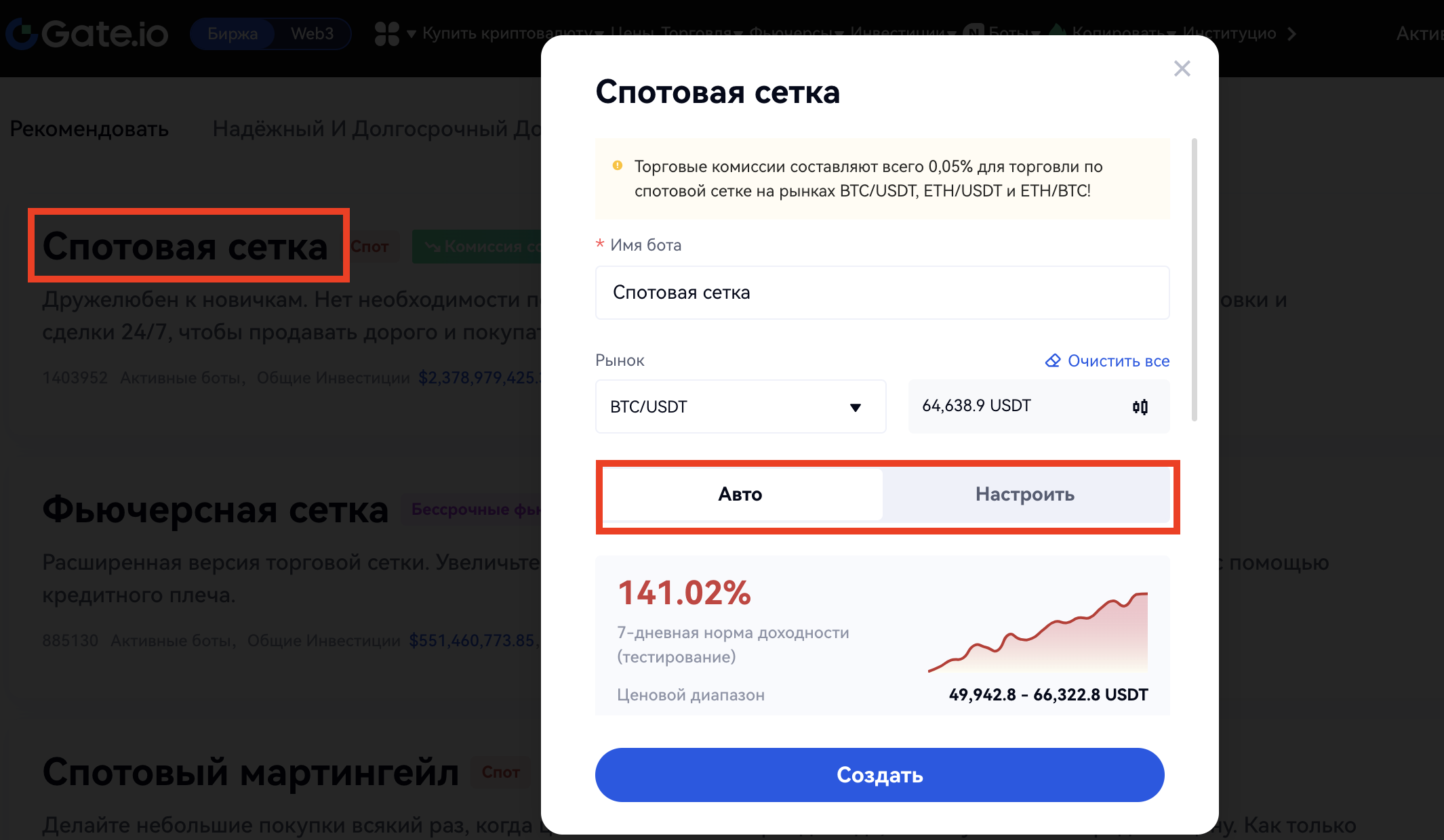 Если вы новичок в торговле криптовалютами, мы рекомендуем основные торговые пары с высокой ликвидностью, такие как BTC_USDT и ETH_USDT. Если вы уже хорошо разбираетесь в торговле на спотовой сетке, вы можете попробовать торговать парами с большими колебаниями, чтобы получать больше прибыли.