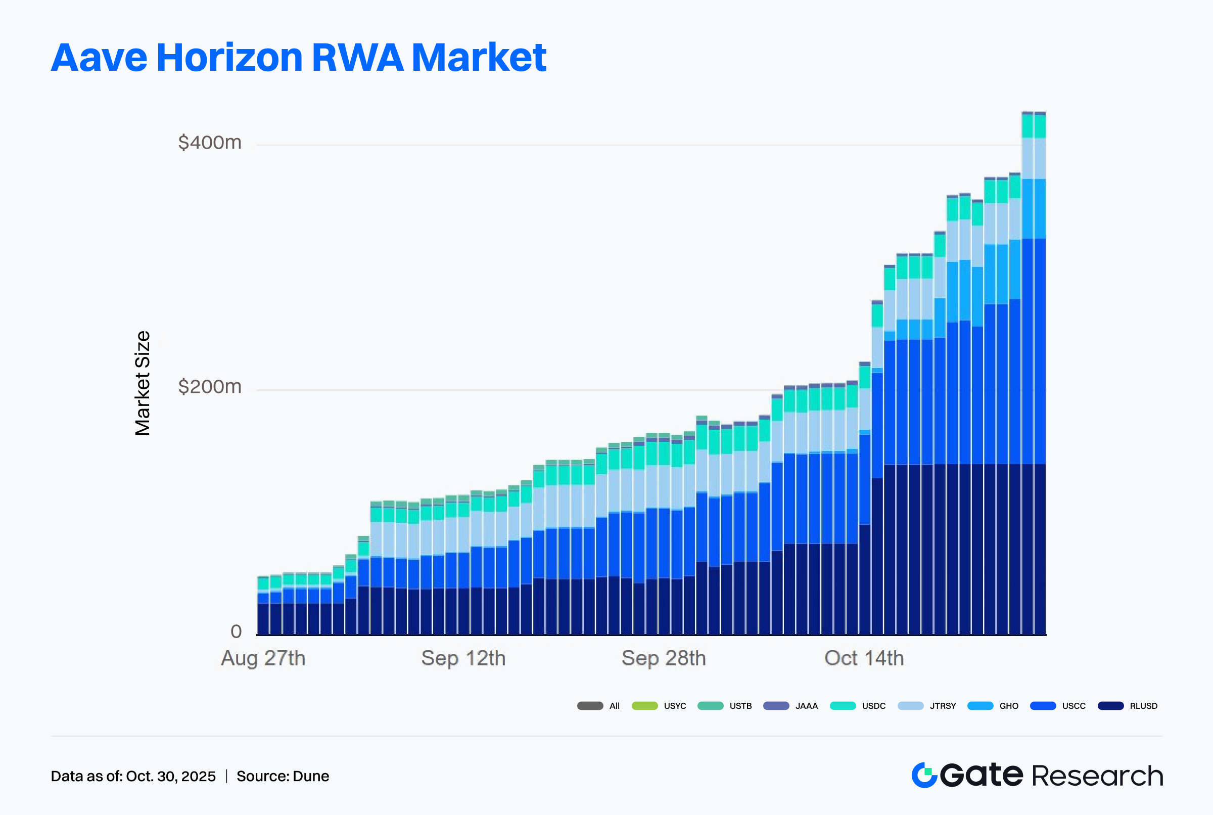 4. Размер рынка Aave Horizon RWA превысил 425 миллионов долларов.