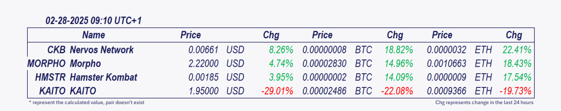 Nervos Network и Morpho**:** Эти криптовалюты значительно выросли за последние 24 часа, причем Nervos Network выросла на 12,19% с полуночи.