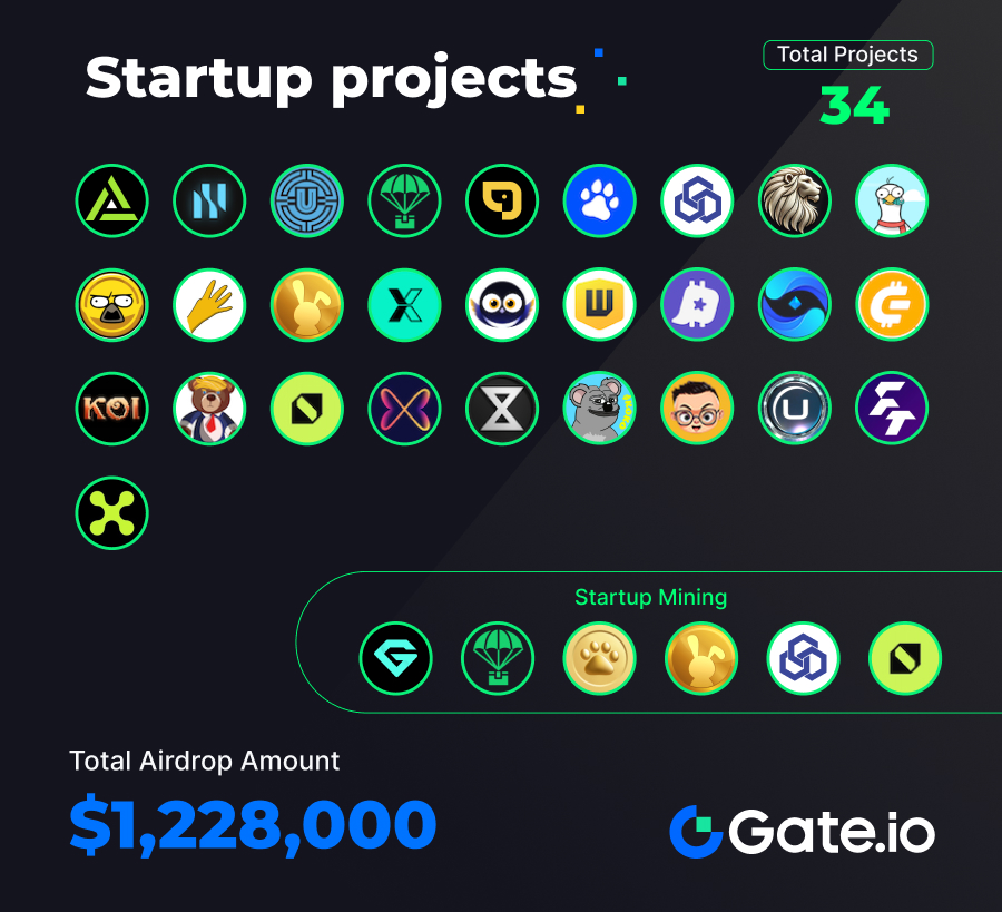 From September 16 to September 30, 2024, Gate has launched 28 new projects and 34 Startup projects with a total airdrop value of $1,228,000.