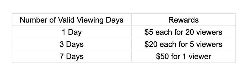 Watch at least 10 minutes of live stream daily to qualify. Rewards will be given weekly based on valid viewing days. The higher your total viewing time each day, the greater your chances of winning! Details below: