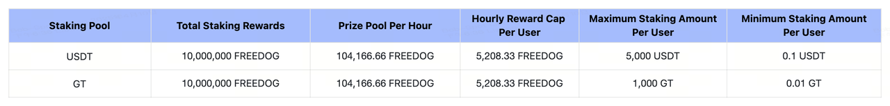How to Participate: Log in to your Gate account and complete Identity Verification → Navigate to Gate Launchpool → Hold at least 0.01 GT/0.1 USDT/20 FREEDOG → Click “Stake”.