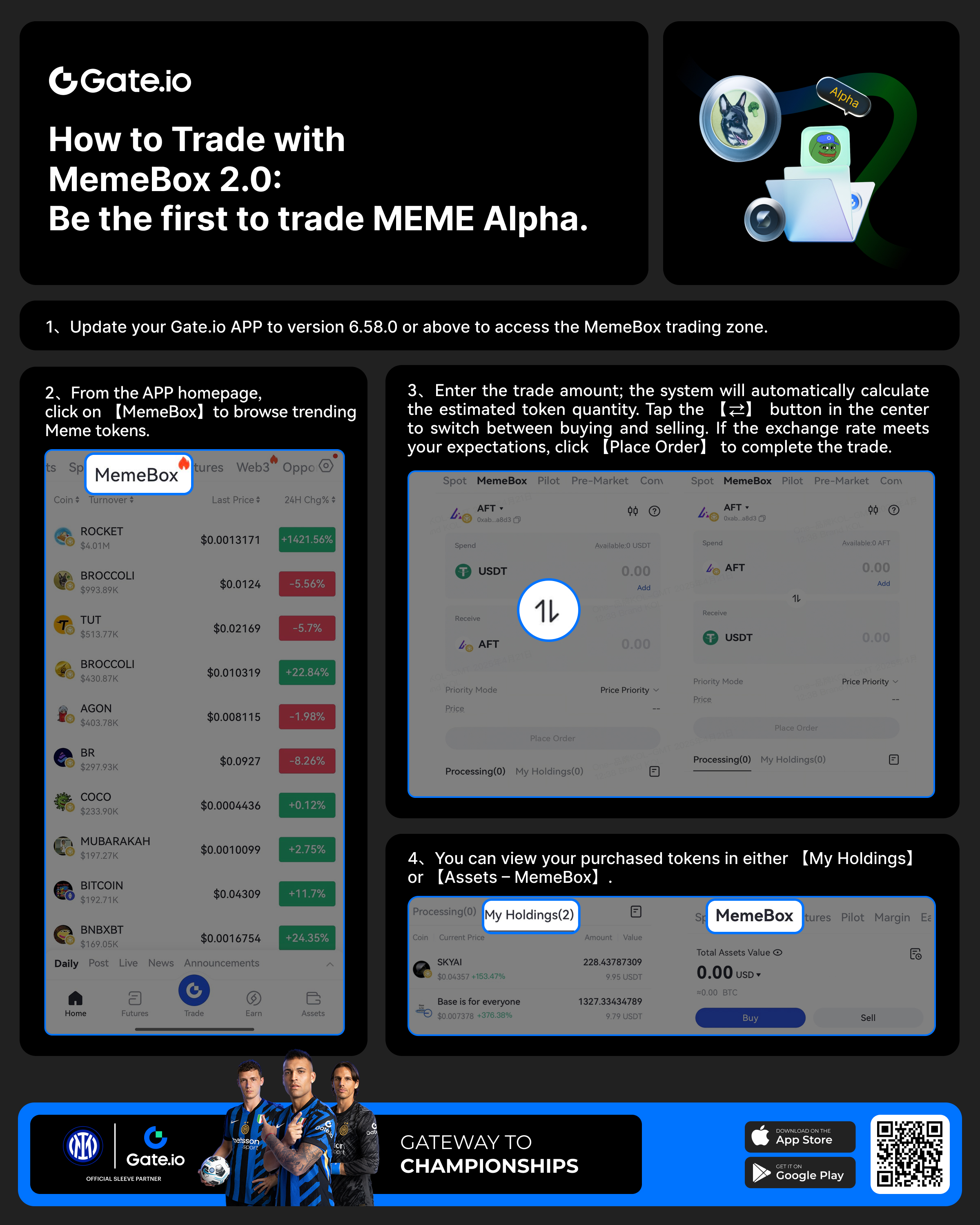 Gate MemeBox is currently only supported on the APP end, users need to upgrade the APP version to