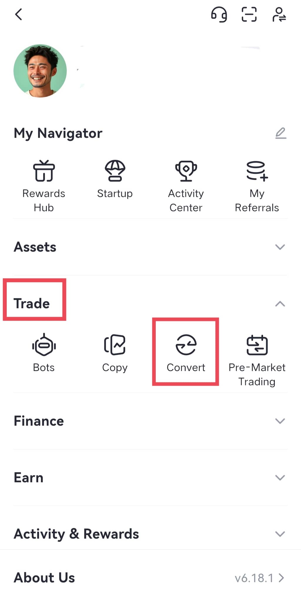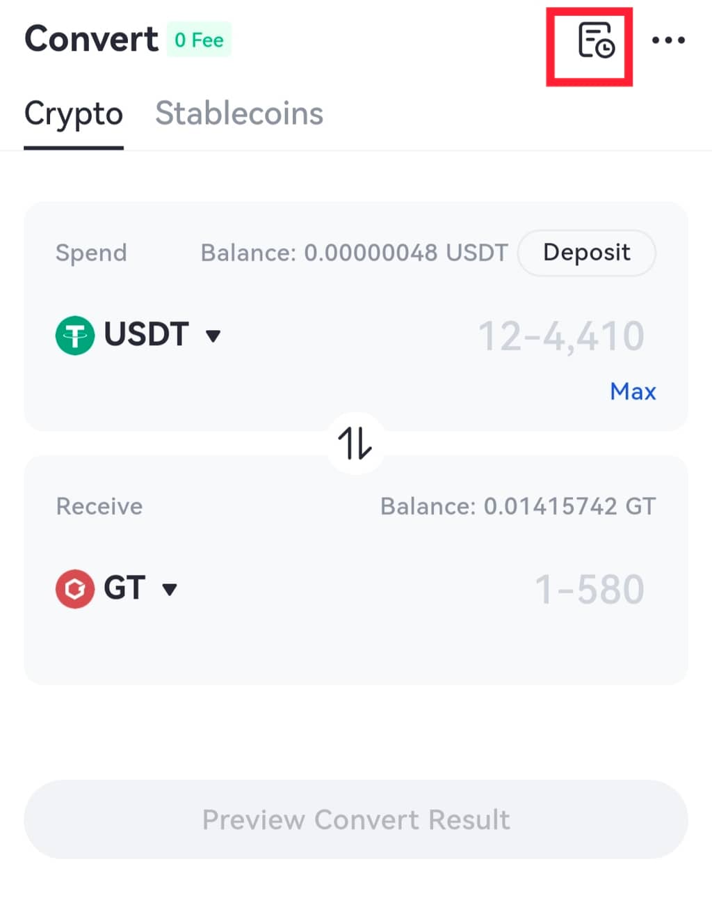 4.Takas yapıldıktan sonra, ticaret geçmişine erişmek için sayfanın sağ üst köşesindeki simgeye tıklayın.