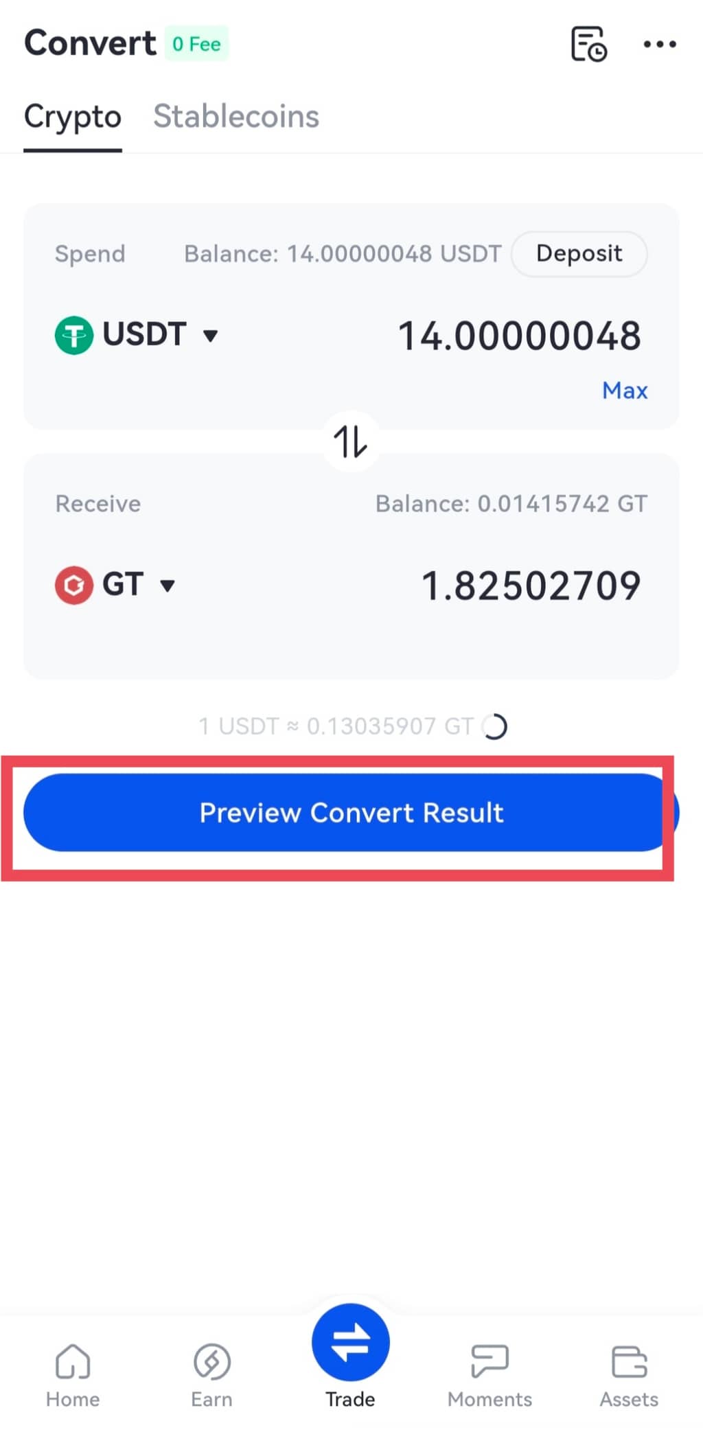 Flash Swap kullanarak belirli bir işlem yaparken, spot hesabınızda yeterli karşılık gelen varlığa sahip olmalıdır. Örneğin, GT'yi 1 BTC ile takas etmek istiyorsanız ve BTC flash swap fiyatı 10.000GT ise, flash işlemi başarıyla onaylamak için spot cüzdanınızda en az 10.000GT kullanılabilir bakiye olması gerekir.