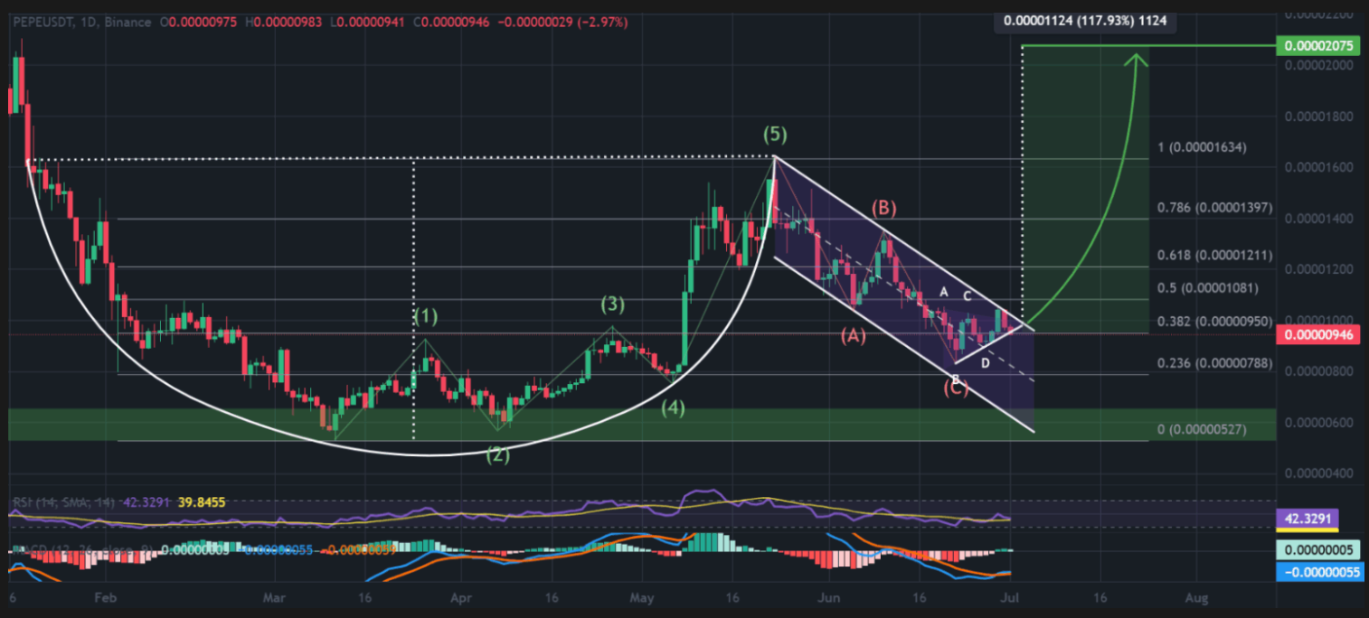 З точки зору технічного аналізу (Технічний аналіз), PEPE знаходиться на ключовій точці повороту: