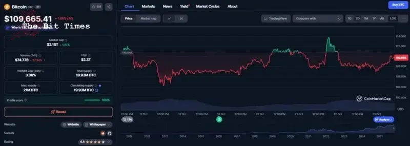 Có phải là câu clickbait hay không, Bitcoin vẫn tiếp tục gặp khó khăn trong tuần này. Nó vẫn giảm gần 4% trong tháng và hơn 1% trong biểu đồ bảy ngày, giao dịch ở mức $109,665 tại thời điểm viết.