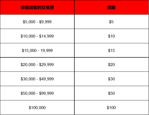 在這個活動中,你需要通過你的推薦鏈接邀請你的朋友或追隨者來註冊。獎勵將根據現貨交易和期貨交易給予不同的百分比,它將根據以下表格計算。