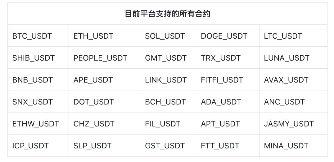 优秀的带单员不仅需要自身能力过硬,同时也需要平台做支撑。目前实盘跟单平台支持带单员进行以下合约交易。