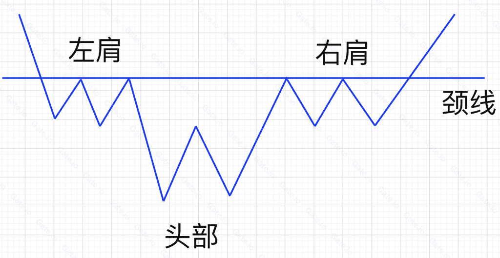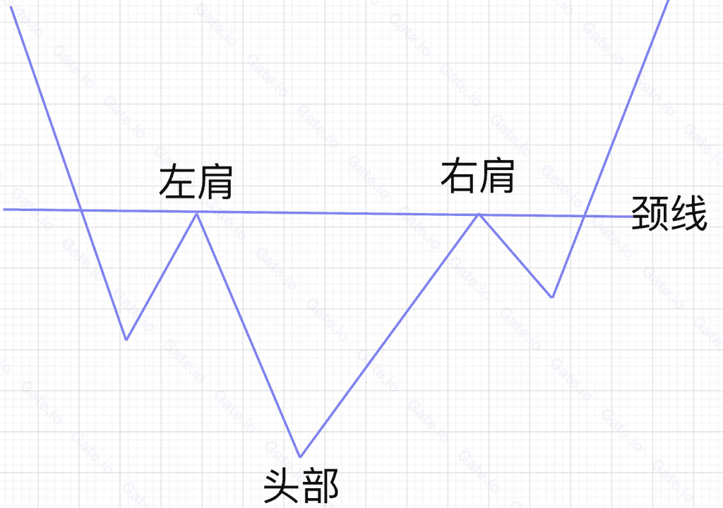 頭肩底是幣價大幅下跌後,形成三個明顯的中間略低於兩邊的低谷。三個低谷從左往右,依次爲左肩、頭部、右肩。