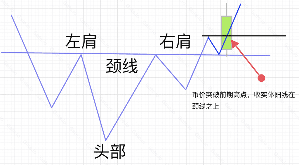 1、頭肩底買入機會一:幣價突破頸線