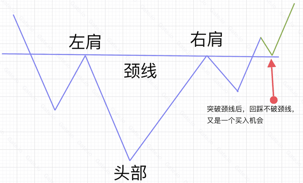 2、頭肩底買入機會二:突破頸線後,技術性回踩頸線