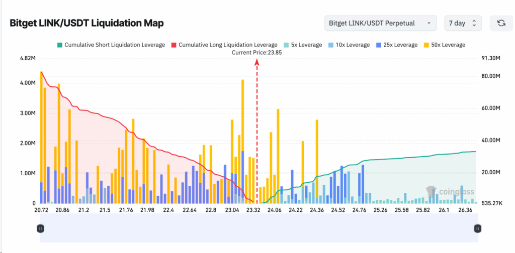 !linkChainlink 清算地圖 |資料來源:Coinglass目前,市場的風險回報率處於正水平。