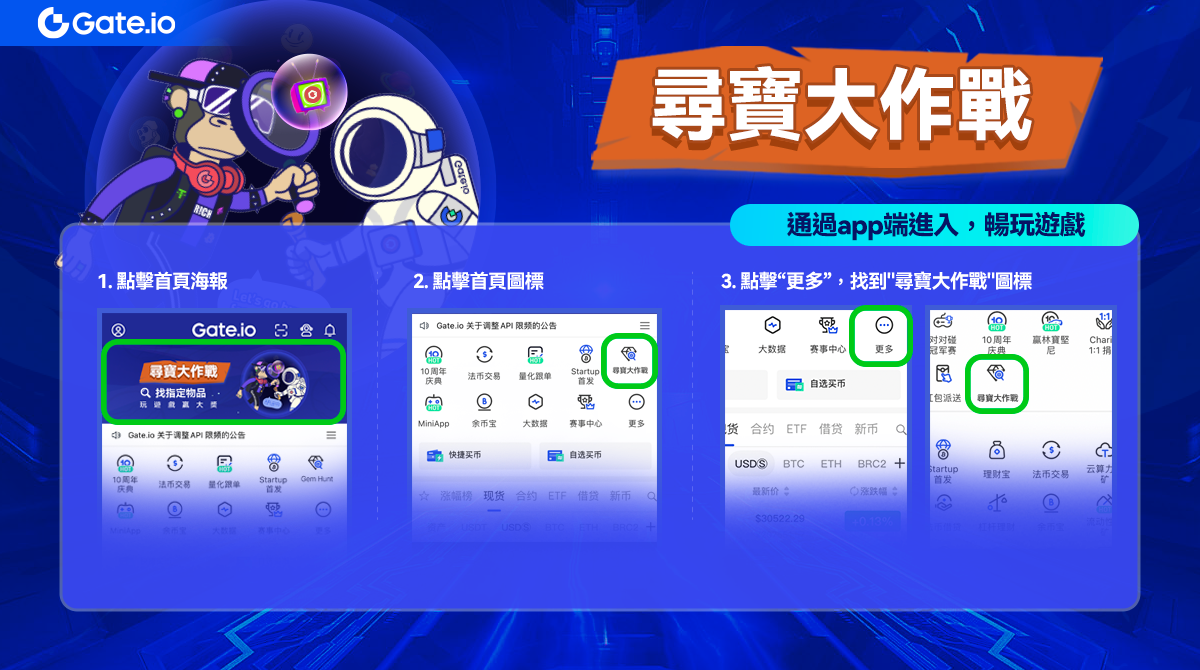 1. 通过Gate app進入“尋寶大作戰”: https://www.gateex.org/activities/gem-hunting?ch=GemHunt2