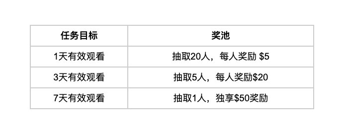 每日观看直播满10分钟即为有效参与,根据有效观看天数领取奖励,每自然周发奖一次。每日累计观看时长越高,中奖机会越大!详情如下: