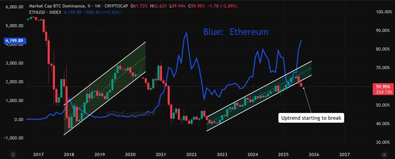比特币市场份额的下降进一步加大了关于“山寨币季节”和大反转可能发生的讨论