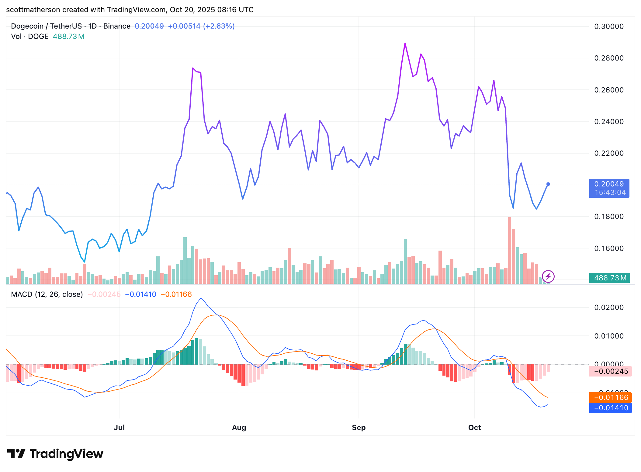 !DogecoinDOGE 在一维图表上交易价格为 0.20 美元 |资料来源:Tradingview.com 上的 DOGEUSDT特色图片来自 Getty Images,图表来自 Tradingview.com